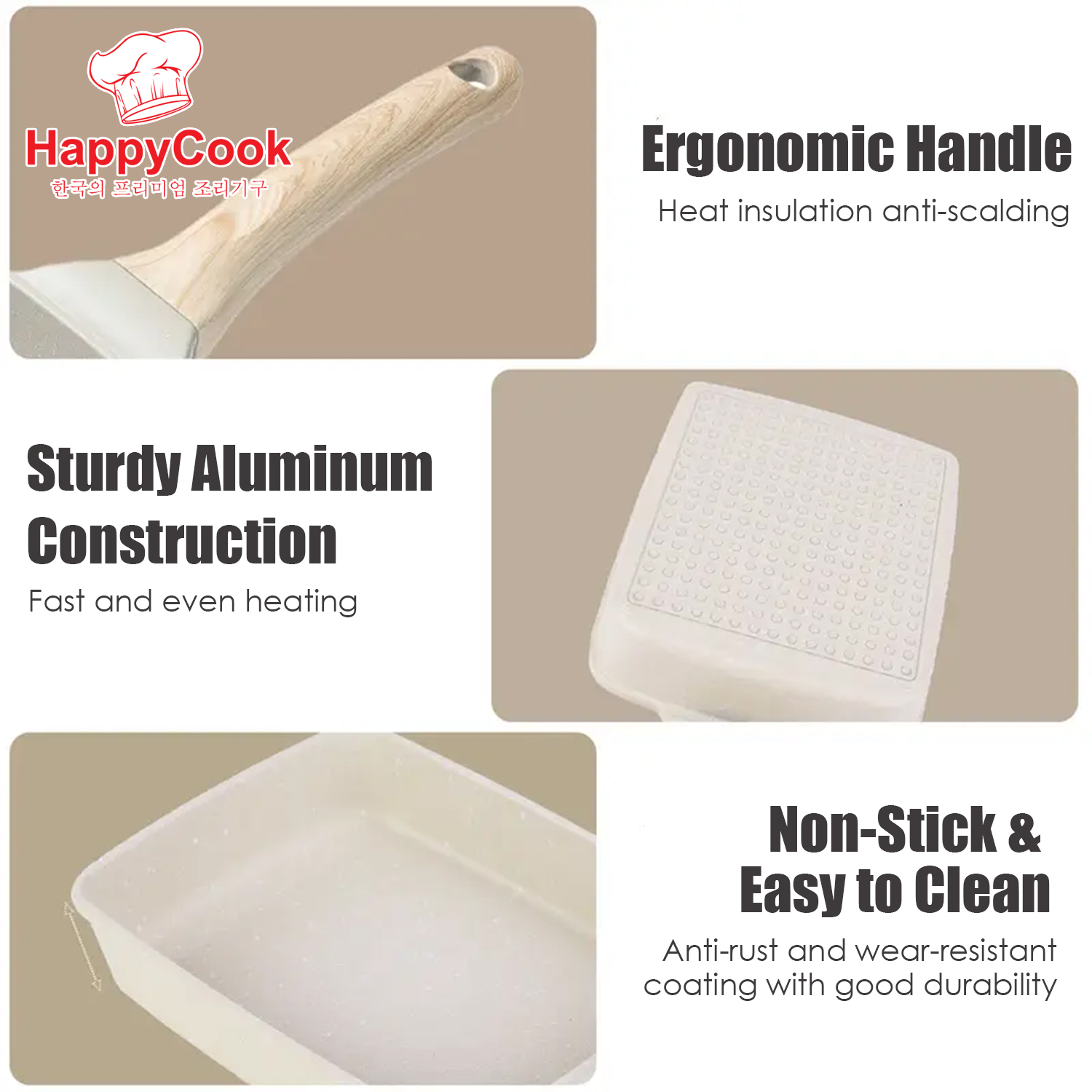 | Material / Ingredients | 1. The Tomago pan has a 830ml capacity, perfect for cooking omelettes and small dishes. 2. Made from durable aluminum alloy, it ensures even heat distribution. 3. The non-stick coating makes cooking and cleaning easy. |
