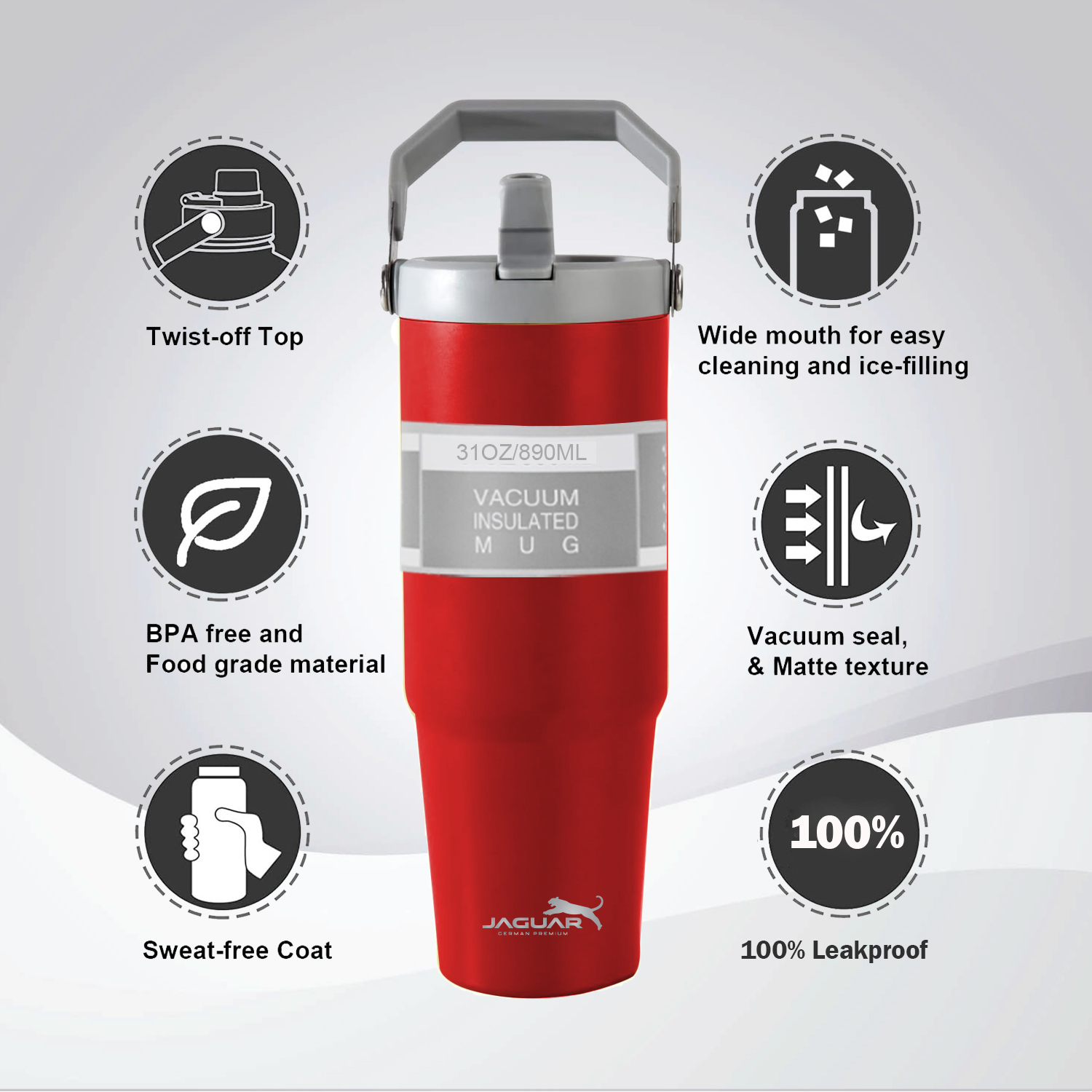 | Highlights | 1. Portable handle - easy to carry 2. Leakproof straw 3. 100% Leakproof - no worries when putting in handbags 4. Keep warm & cold for hours (warm up to 6 hours, cold up to 12 hours) 5. Anti-slip cup bottom |