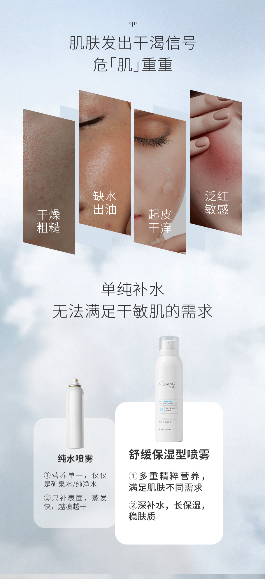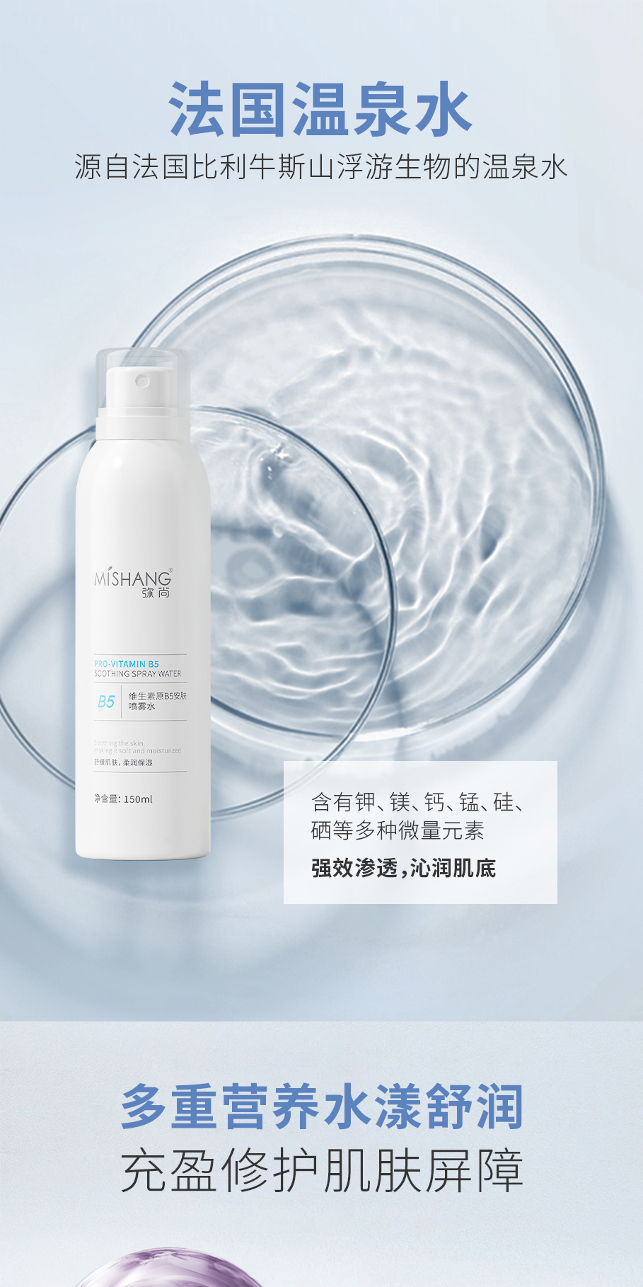 | Highlights | (Emphasizing deep hydration and long-lasting moisturization) Instantly alleviates sudden discomfort of the skin, with core ingredient Provitamin B5 for rapid soothing hydration, calming skin discomfort, reducing inflammation and redness. Enriched with powerful and fast-absorbing thermal spring water from the French Pyrenees Mountains, moisturizes the stratum corneum, stabilizes skin condition, and xylose strengthens skin barrier function. |