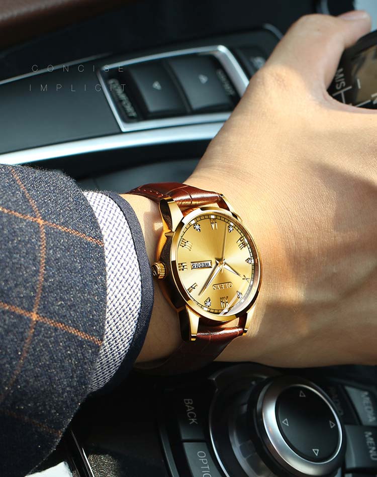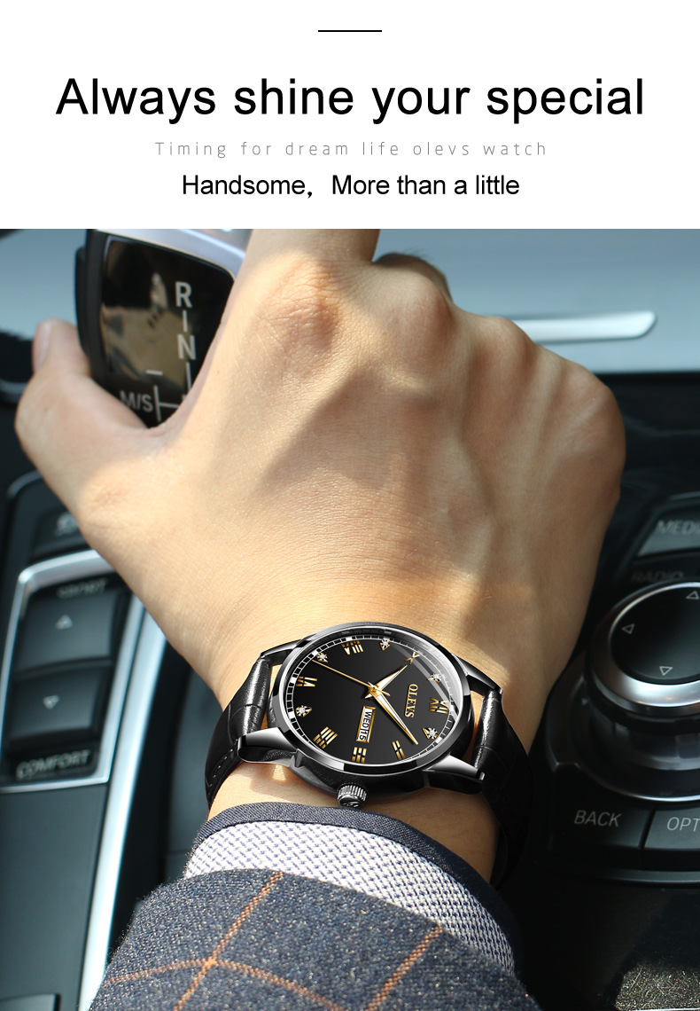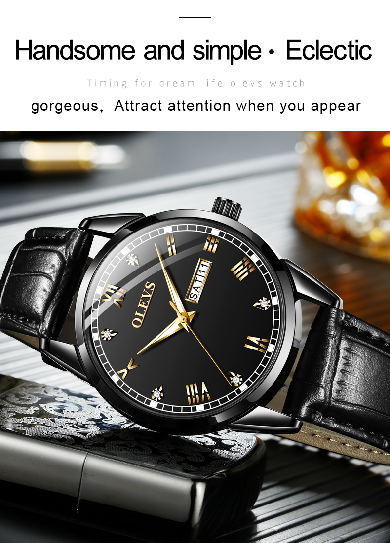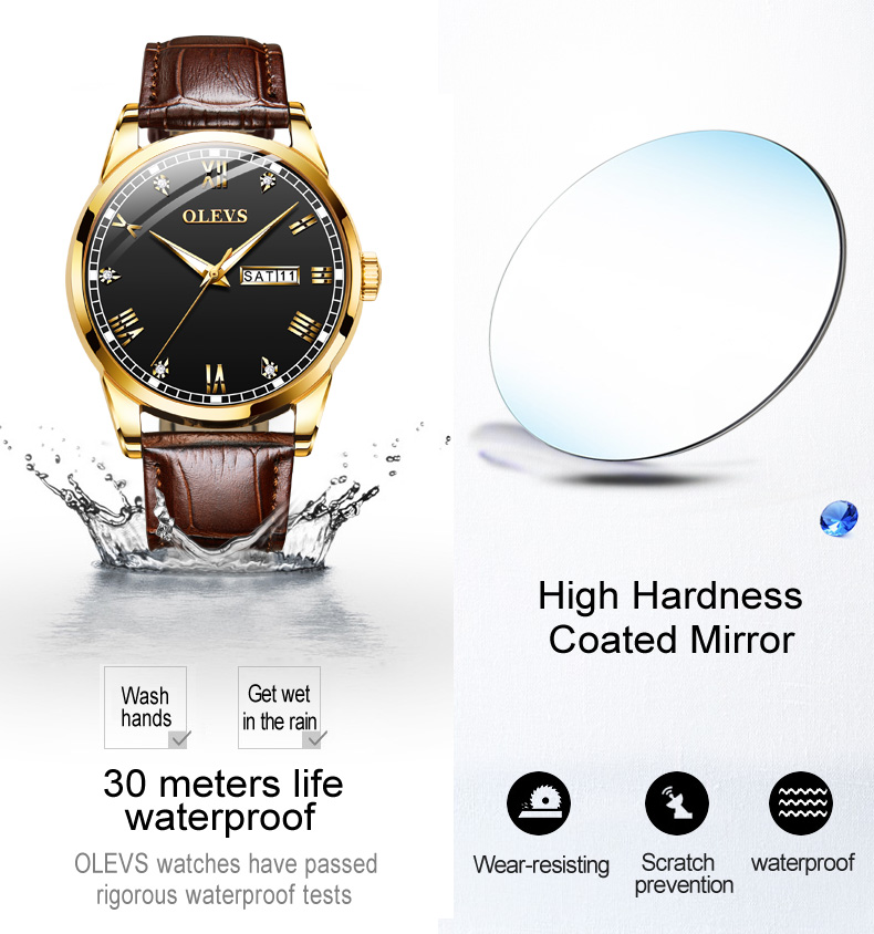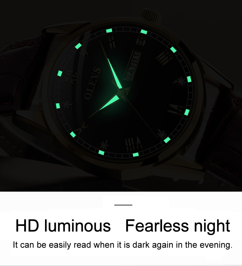 | Highlights | -Brand Name: Olevs -Case Dimension: 39mm -Case Thickness: 9mm -Strap Color: Brown -Movement: Quartz Movement -Water Resistant Level: 3 ATM [ Life Waterproof ] -Features: Minimalist Style yet elegance. Shimmering Surface, Romaniac Dial |