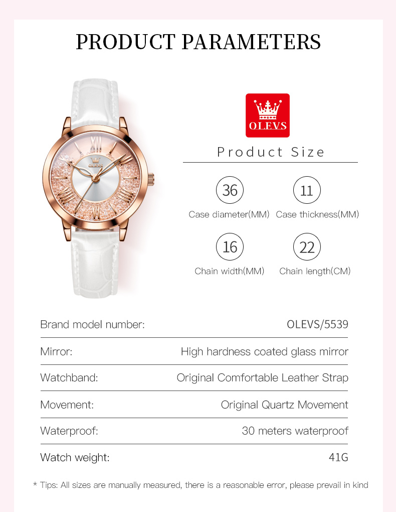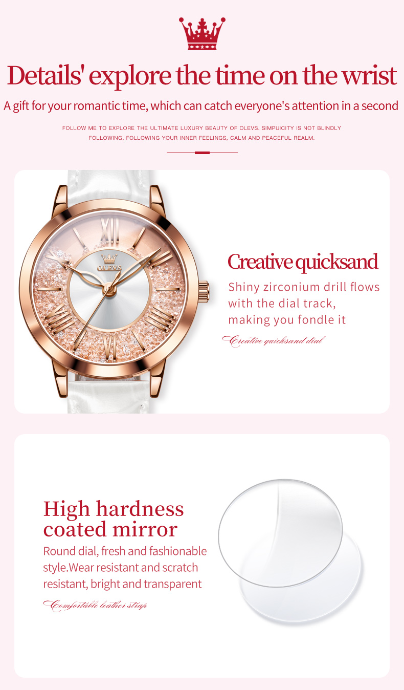 | Highlights | -Case Dimension: 36 mm -Case Thickness: 11 mm -Case Material: Steel & IP vauum plating -Glass Material: Hardness Coated Mirror -Strap Material: Stainless Steel -Strap Color: Pink-Movement: Quartz Movement -Water Resistant Level: 3 ATM [ Life Waterproof ] |